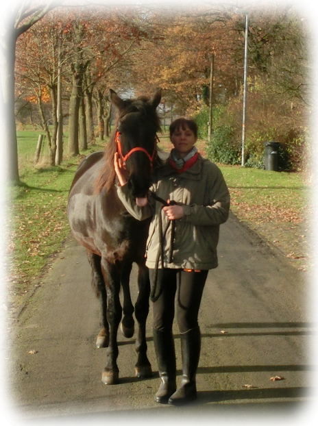 - 09.11.2014: waren wir auf einem Bodenarbeits und Mobilitätskurs mit Hoppi. Meine Schwester und Freundi waren Zuschauer. Der Trainer dort hat erst allegmein etwas an einem Pferd gezeigt und wie man dann im Freilaufen sehen kann wie sich durch eine Kombination aus Dehnungsübungen, Chiropraktik etc. eine Verbesserung des Gangbildes entsteht. Danach sollten wir in Gruppen selbst ein Pferd analysieren und die Ergebnisse in der Gruppe vortragen. Er hat dann noch ergänz und dann wieder einige Kniffe angewand und wir haben wieder verbesserte Gangbilder gesehen. Damit man die anderen nicht beeinflusst, war man bei der Analyse nicht bei seinem Pferd. Man konnte sich dann aber in der Gruppe die Ergebnisse anhören und angucken. Hoppi hat einige Baustellen (war mir klar). Entlang der Halswirbelsäule waren auch verhärtungen da, also verspannungen und er hat auch leider einen sichtaren Unterhals. Der Rücken ist fest und lässt sich nicht wirklich aufwölben und der Gang ist harkelig. Die Schulterbemuskelung ist ungleich. In den Trab haben ihn die Teilnehmer bei der Analyse garnicht bekommen, aber auf einem Kreis so groß wie eine Volte war das zu schwer, da ist er nur gehoppelt. Lt. Analyse ist Hoppi lahm und unreitbar, macht aber an sich einen guten und aufgewechten Eindruck. Der Trainer hat dann Hoppis Hals "eingerengt" auf beiden Seiten, dass hat doll und mehrfach geknackt und Ihn mit diesem "Stäbchen" noch manipuliert, also über die Hinterhand gestrichen. Danach ist er dann auch getrabt, wobei der Kreis auch leicht größer war als beim ersten Versuch und er konnte auch 2 mal antraben ohne reinzuhoppeln. Mein Fazit: Ich hab viele Anregungen mitgenommen, der Trainer selbst war nicht so meiner. Er hat jedoch eine breite Mischung aus Techniken gezeigt, aber gerade diesem Einknacken stehe ich kritisch gegenüber. Die Dehnungsübungen und die Massagen will ich mir jedoch zu Herzen nehmen. Ich habe ja schon lange entsprechnde Bücher im Schrank und auch schon selbst entsprechende Übungen mit Hoppi gemacht, aber zu lange ist es her. Man muss eben dranbeleiben.