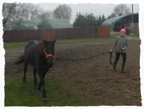 - 26.12.2014: Waren wir Morgens am Stall. Es gab Möhrchen und wir machten wieder unsere Dehnungsübungen mit den Beiden und danach gings noch in die Halle (Bodenarbeit und Longe). Hat Hoppi heute gut gemacht. Das Seitwärtsgehen an der Hand ist in den Ansätzen schon ganz gut und an der Longe lief er auf Beiden Händen Trab und auch Galopp.